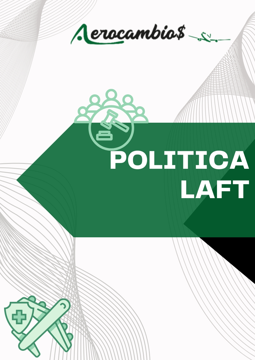 En Aerocambios cumplimos con la Política de Prevención de Lavado de Activos y Financiación del Terrorismo (LAFT), en línea con la normatividad colombiana y las directrices de la DIAN y la UIAF. Nuestro compromiso es garantizar operaciones transparentes, seguras y legales, implementando controles internos, monitoreo permanente y capacitación a nuestro equipo para detectar y prevenir riesgos relacionados con lavado de activos y financiación del terrorismo
